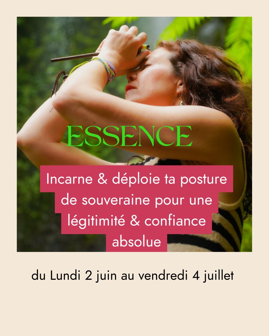 « Merci pour cette magie que tu m’as transmise afin de prendre conscience de ma singularité, de ma valeur et de me réaligner. Bravo pour tout ton travail, ta gentillesse et ton amour pour accompagner l’autre. Un programme authentique, puissant et rempli d’amour de soi. »