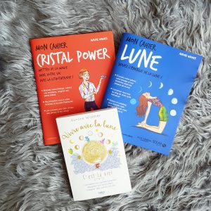 - un gros coup de coeur pour les 2 cahiers : cristal power sur la lithothérapie et mon cahier lune (8 euros sur Amazon et 11 euros sur le site de bonheur au naturel avec sa jolie dédicace)