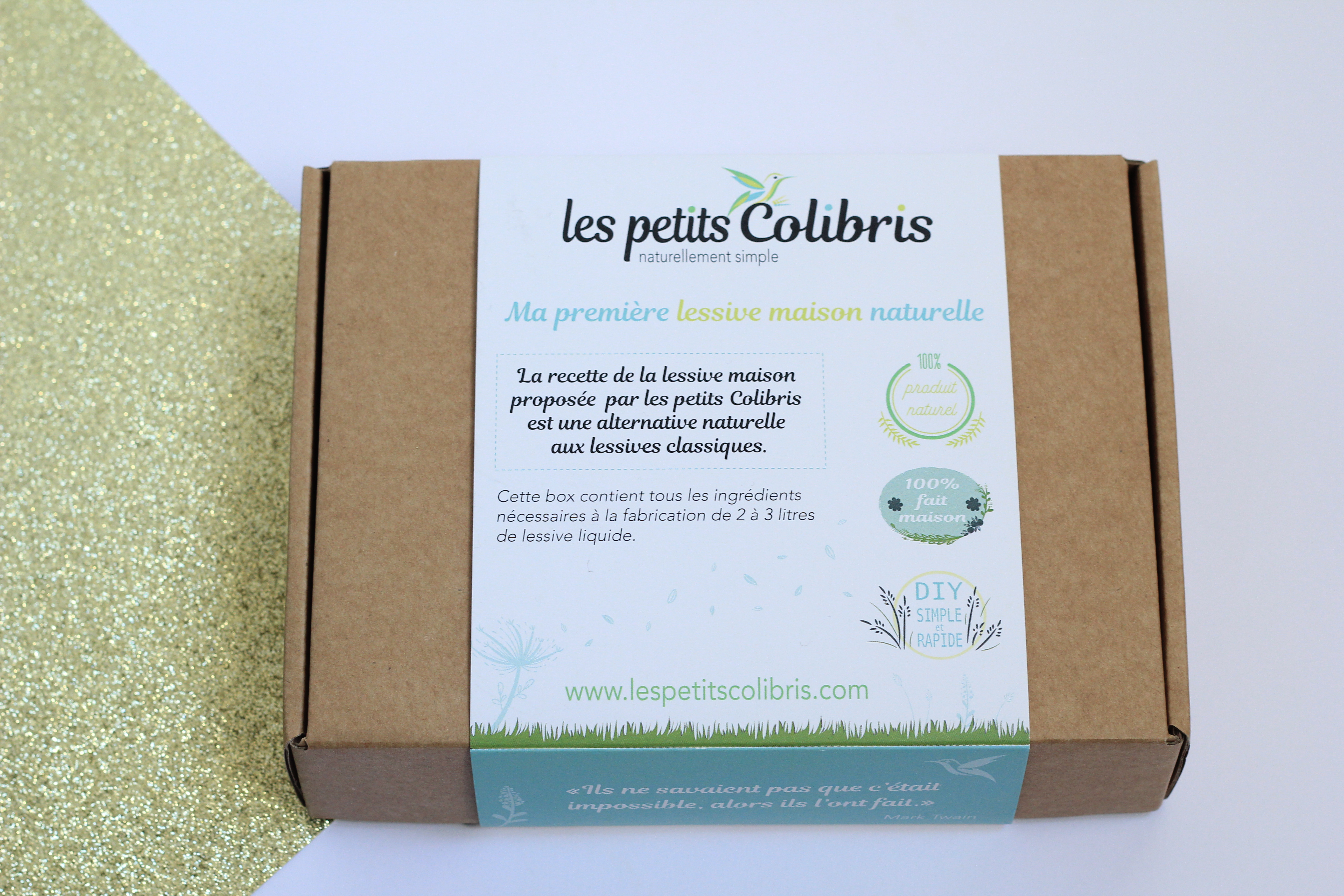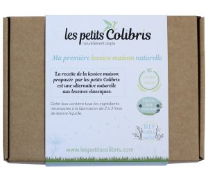 Les kits maison des petits colibris : Kit pour faire sa lessive maison naturelle ou ses pastilles WC (9 euros). Virginie travaille seule et y met tout son coeur pour faire sa « part de colibri ».