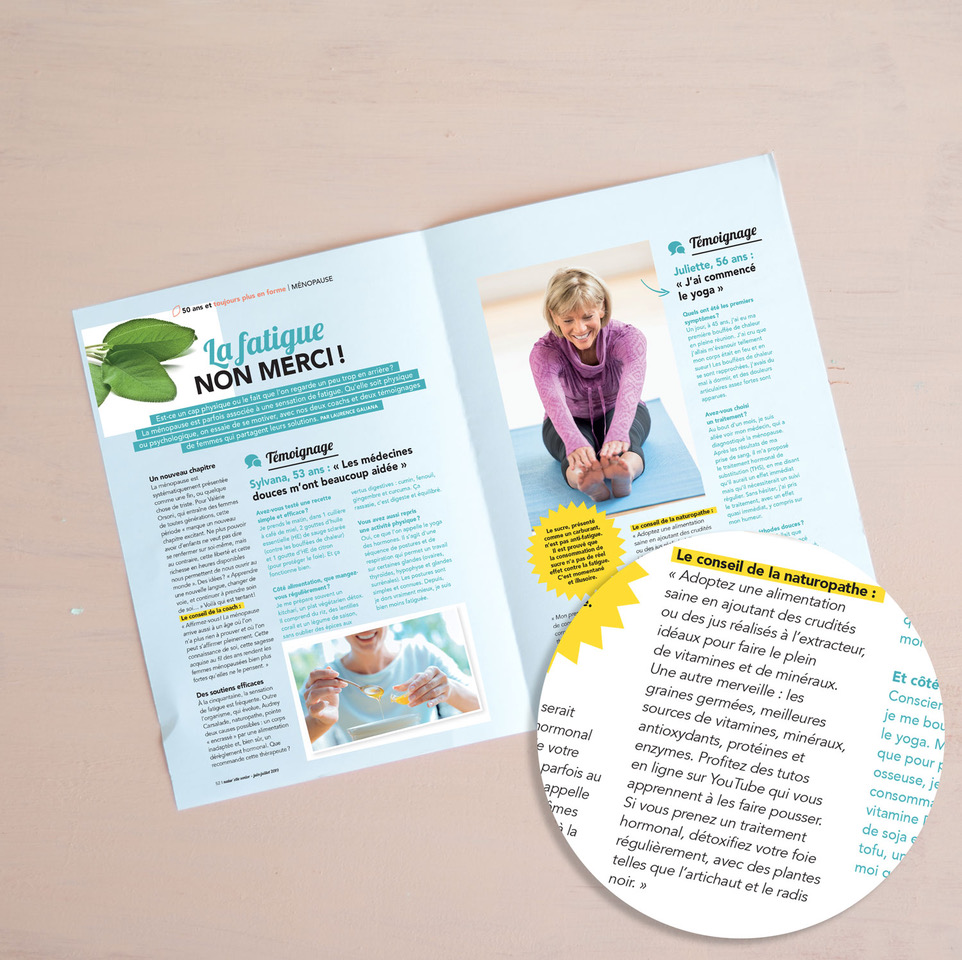 « Limiter la prise de poids » et « La fatigue, non merci » dans le magazine Natur’Elle de juillet 2019